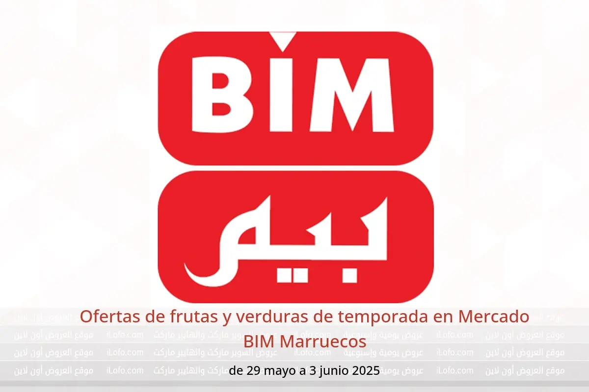 Mercado BIM Marruecos anuncia nuevos descuentos titulados « Ofertas de frutas y verduras de temporada » disponibles hasta el día 3 junio 2025, nuevas ofertas y precios sólo en Marruecos.