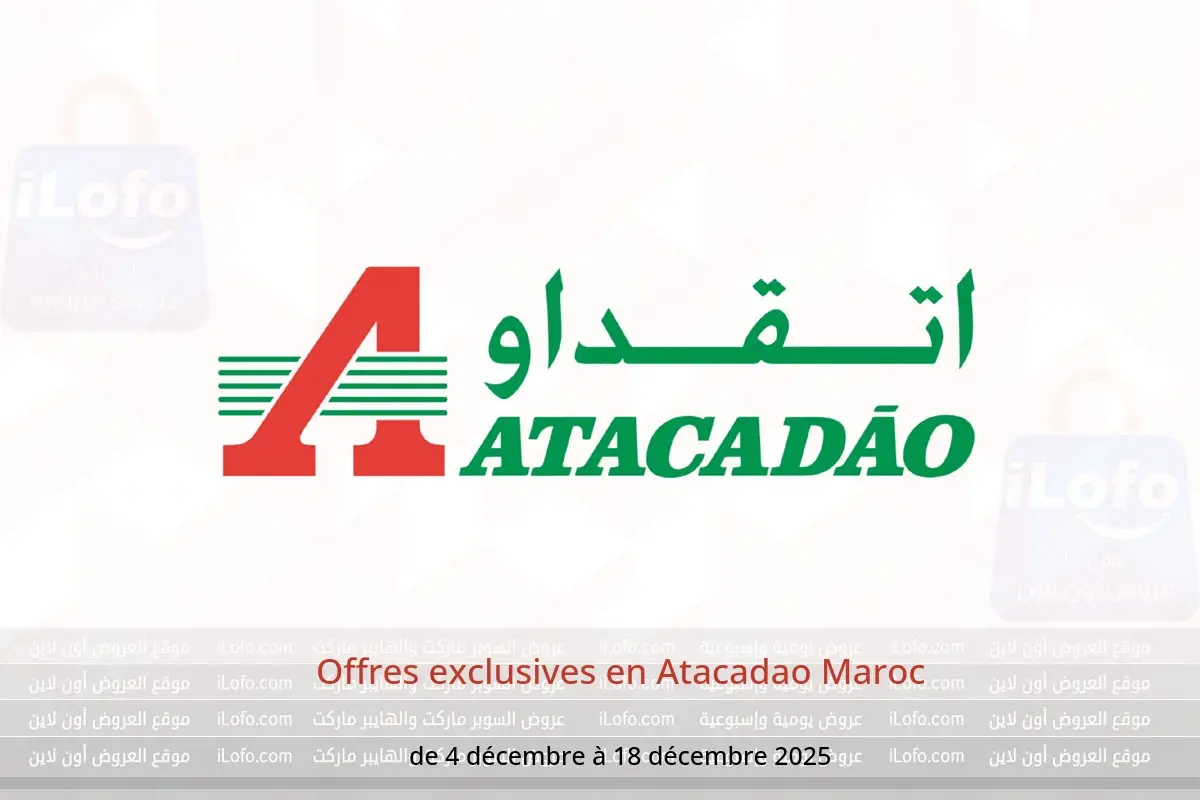 Atacadao Maroc annonce de nouvelles réductions intitulées « Offres exclusives » disponibles jusqu'au 18 décembre 2025, de nouvelles offres et prix uniquement en Maroc.