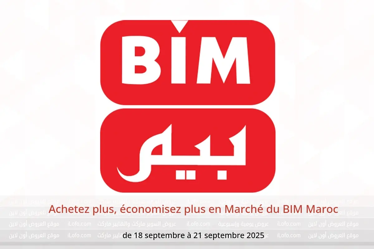 Marché du BIM Maroc annonce de nouvelles réductions intitulées « Achetez plus, économisez plus » disponibles jusqu'au 21 septembre 2025, de nouvelles offres et prix uniquement en Maroc.